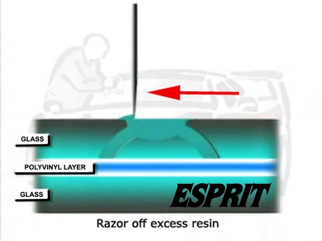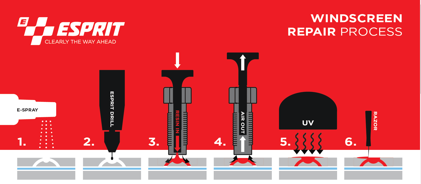A javítás elve az, hogy a ragasztott szélvédő felületén keletkezett sérülést feltöltjük az üvegével megegyező törésmutatójú gyantával, majd az összes levegő eltávozta után mesterséges vagy természetes UV-fény segítségével megkötjük azt. Jellemzően az így kialakult kötés szilárdsága az ESPRIT anyagok esetében magasabb, mint az üveg saját kötési szilárdsága, így egy későbbi esetleges sérülés esetén sem fog a korábban ESPRIT-tel javított repedés újra végigszaladni. Az esztétikum mellett tehát a biztonság is döntő szempont, ennek főleg a nagyobb üvegfelülettel rendelkező haszongépjárművek esetén van kiemelt jelentősége.